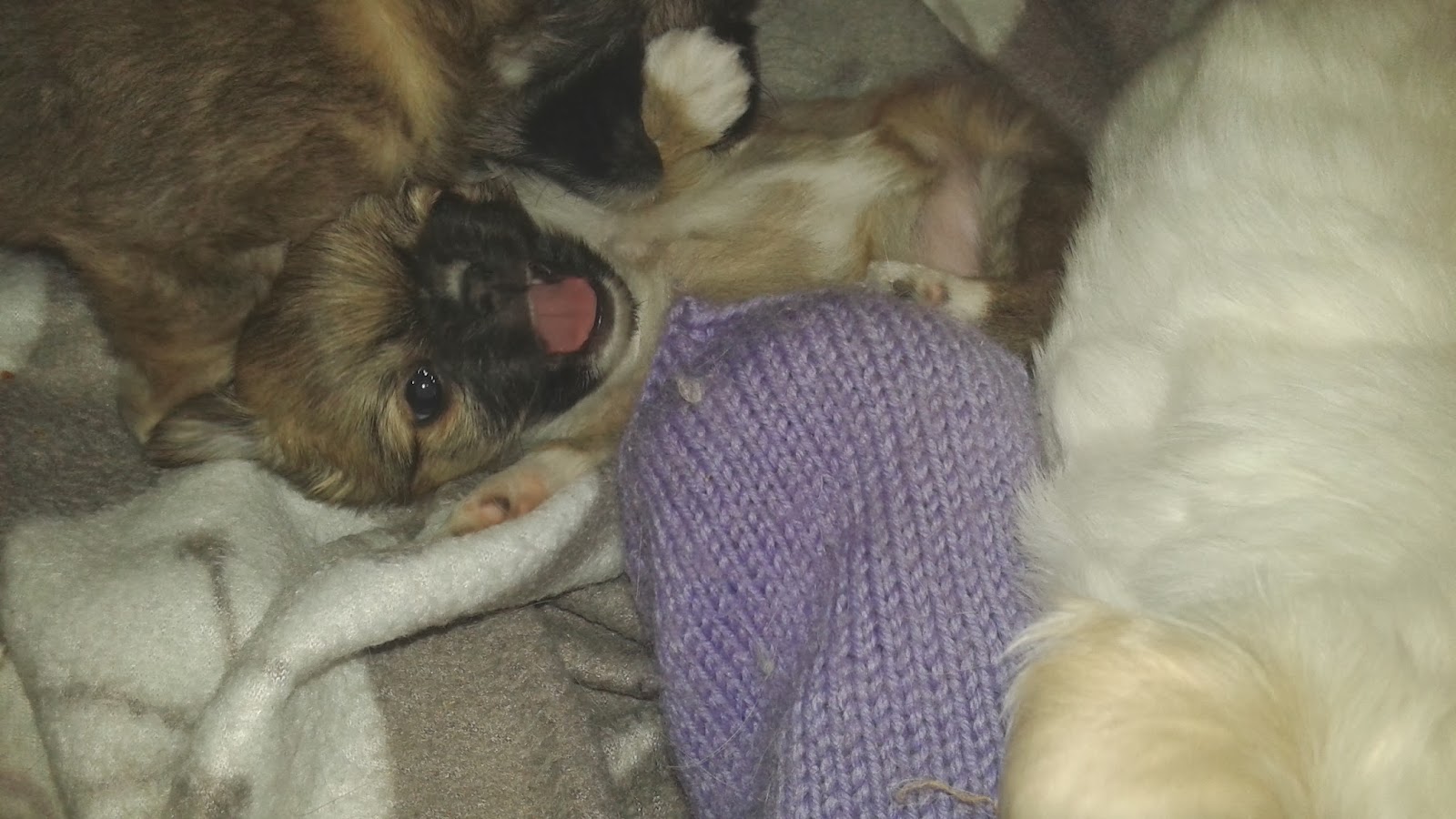 Sain Raidan ennen yötä kotiin ja saimme alkaa harjoitella keskospentujen hoitoa. Raita hoiti heti hienosti pissatukset ja kakatukset, mutta maidontulon kanssa oli ongelmia ja pennut olivatkin ensimmäiset vuorokautensa täydellisesti keinoruokinnan varassa. Sain painot pysymään syntymäpainoissa, mutta siitä huolimatta kaksi sektiolla syntynyttä urospentua menehtyi vuorokauden ikäisenä. Olo oli epätoivoinen, sillä pennut olivat kuolleessaan ruokailleita ja lämpimiä ja siitä huolimatta vain nukkuivat pois. Pennut eivät vaan olleet valmiita tähän maailmaan. Muiden pentujen kanssa jatkoimme taistelua. Sektiolla syntynyt narttu menehtyi neljän vuorokauden ikäisenä.